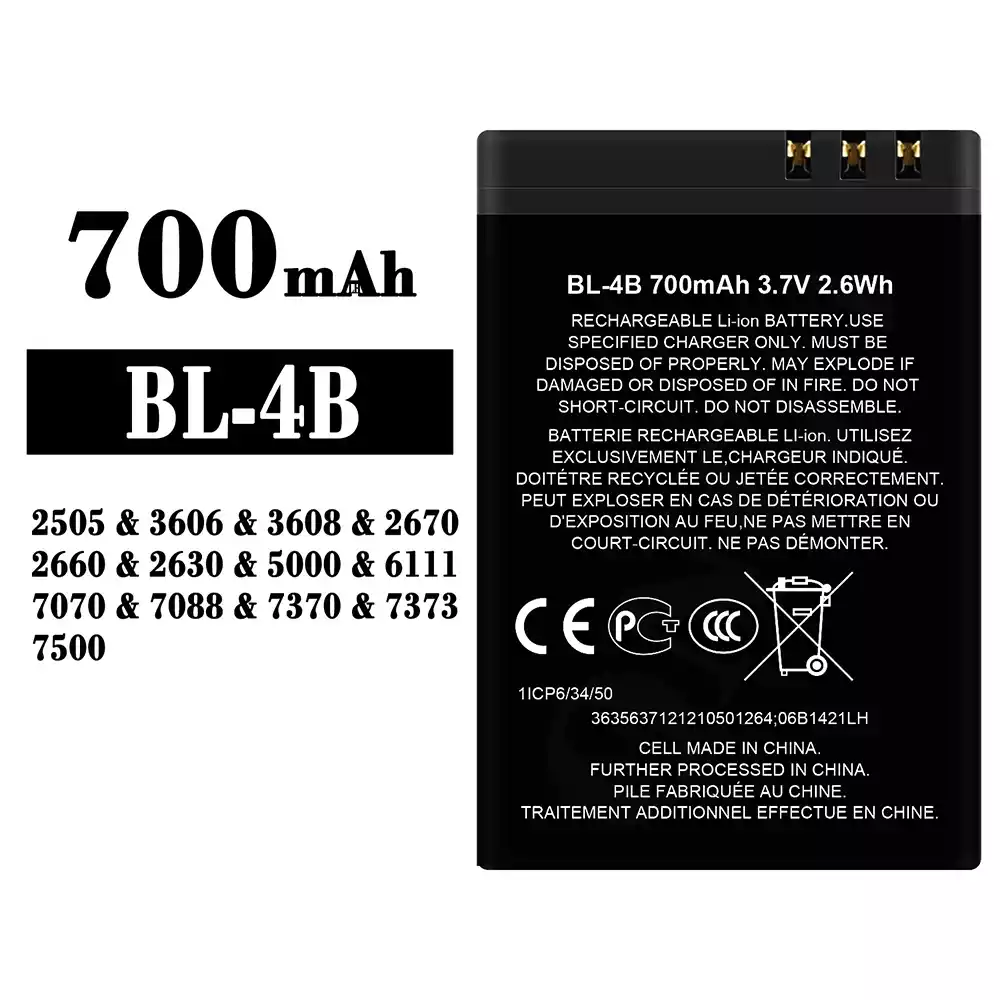 Akku BL-4B alkalmas Nokia 2505 / 3606 / 3608 / 2670 / 2660 / 2630 / 5000 / 6111 / 7070 / 7088 / 7370 / 7373 / 7500