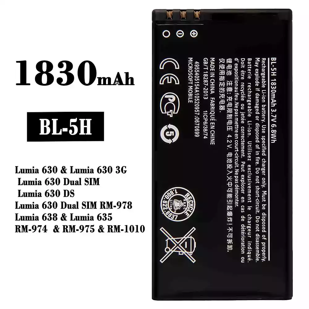 Akku BL-5H alkalmas Nokia Lumia 630 / Lumia 630 3G / Lumia 630 Dual SIM / Lumia 630 DS / Lumia 630 Dual SIM RM-978 / Lumia 638 / Lumia 635 / RM-974 / RM-975 / RM-1010