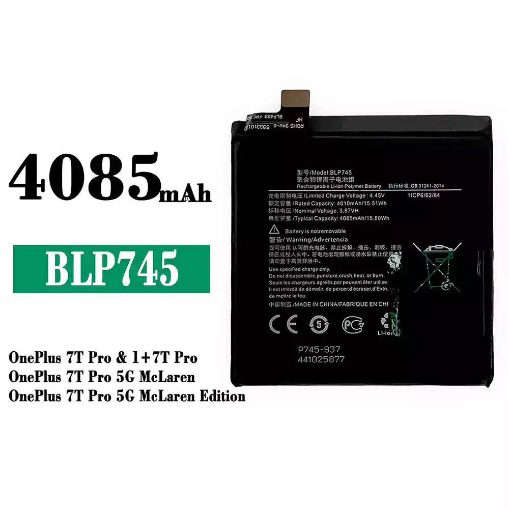 Akku BLP745 alkalmas OPPO OnePlus 7T Pro / 1+7T Pro / OnePlus 7T Pro 5G McLaren / OnePlus 7T Pro 5G McLaren Edition