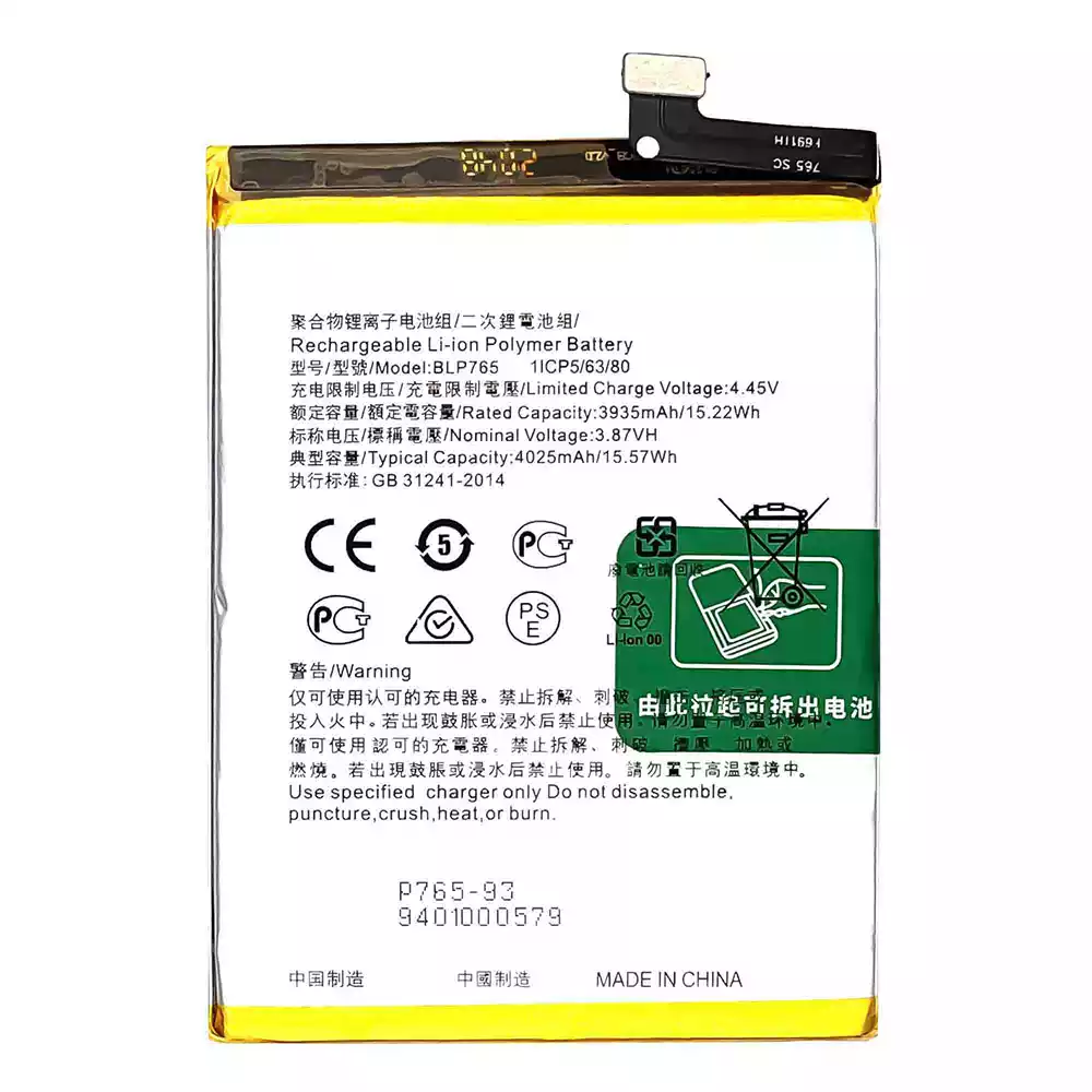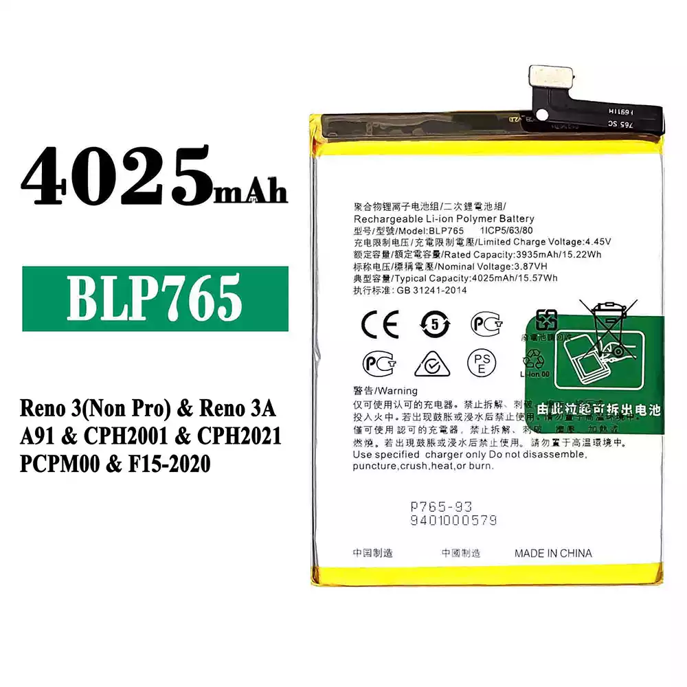 Akku BLP765 alkalmas OPPO Reno 3(Non Pro) / Reno 3A / A91 / CPH2001 / CPH2021 / PCPM00 / F15-2020