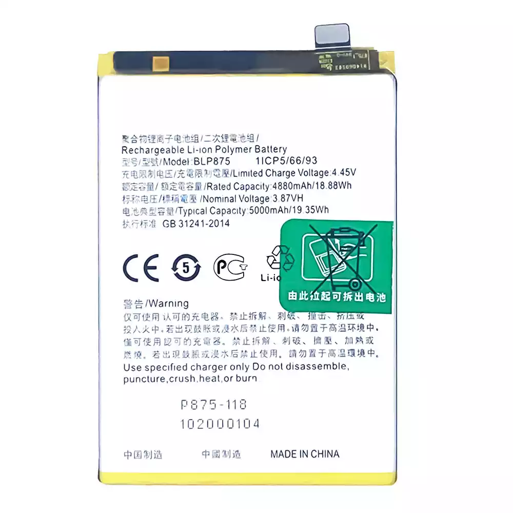 Mobiltelefon akkumulátort BLP875 alkalmas OPPO Realme Narzo 50 / Realme 9 5G