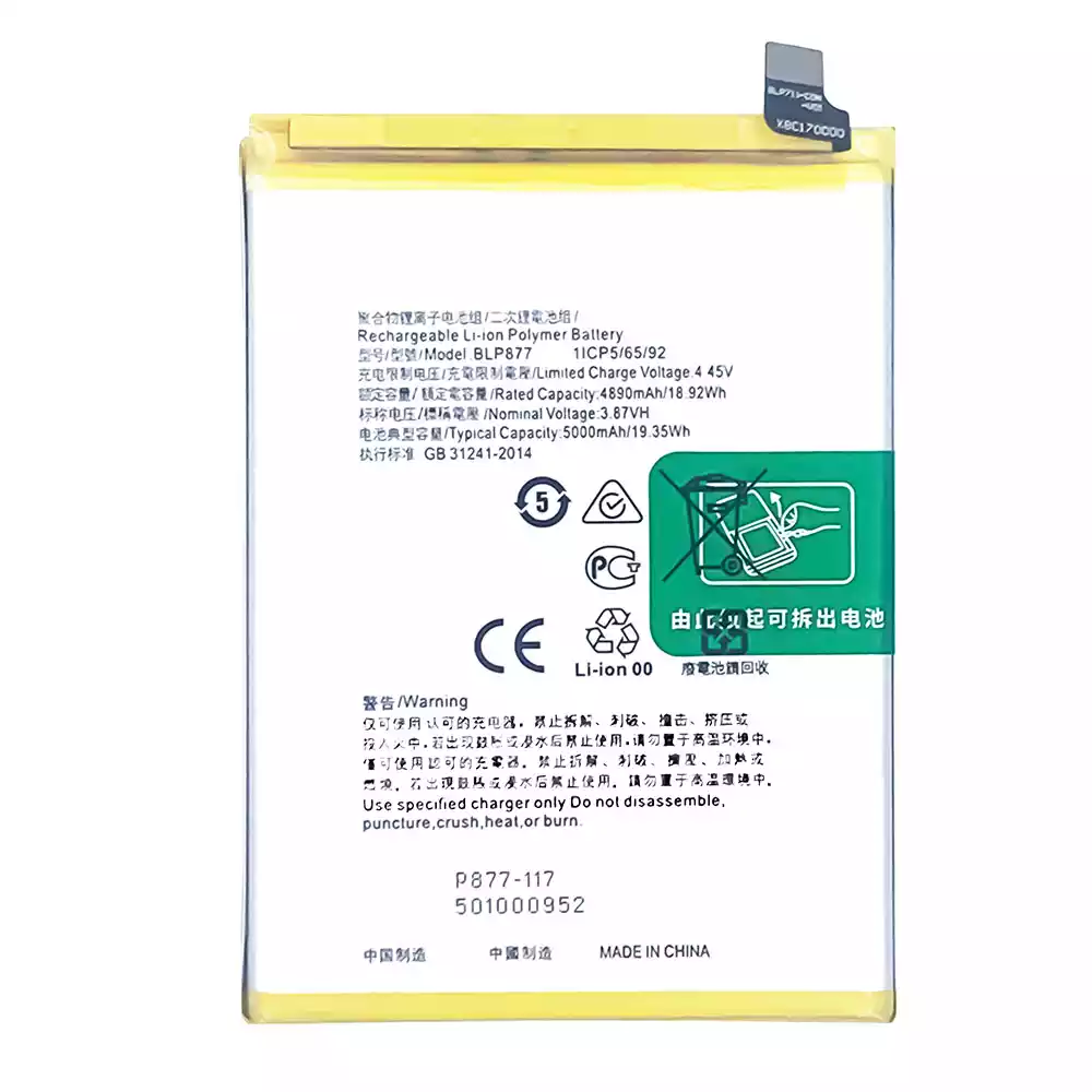Mobiltelefon akkumulátort BLP877 alkalmas OPPO Realme 8i / Realme C31 / Realme C30 / Realme Narzo 50I Prime / Realme C33 / Realme C30S / Realme 9i 5G / Realme Narzo 50A Prime